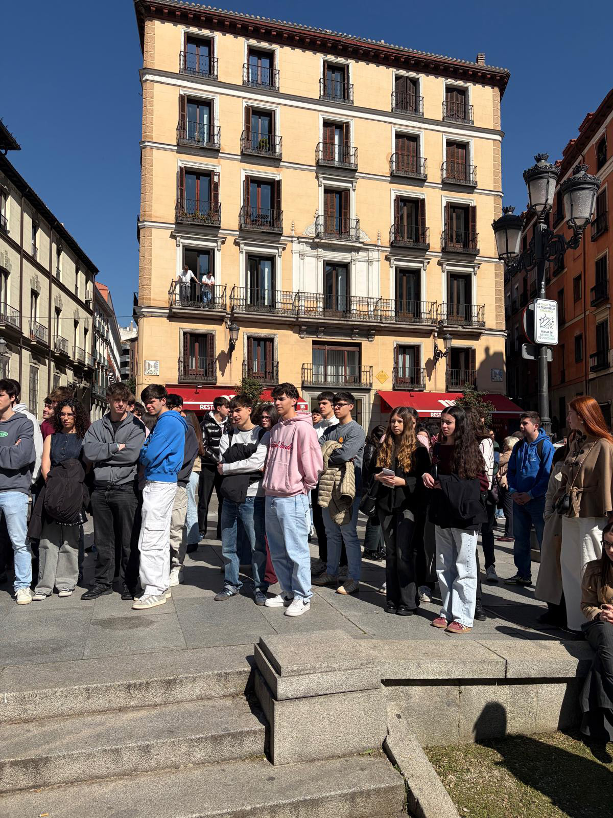 En un día soleado y con buena temperatura, un grupo de alumnos nos guio por la ciudad de Madrid, testigo de innumerables acontecimientos históricos. El paseo comenzó en el Senado y prosiguió por diferentes escenarios protagonistas de la historia nacional. Entre los puntos destacados se incluyen el monumento que señala el lugar del atentado anarquista contra Alfonso XIII, la placa conmemorativa del levantamiento del pueblo de Madrid frente a los franceses el 2 de mayo de 1808, el sitio que recuerda el atentado que acabó con la vida de Prim y el emblemático edificio donde se debaten las leyes de nuestro país, el Congreso de los Diputados, acompañado de sus famosos leones.